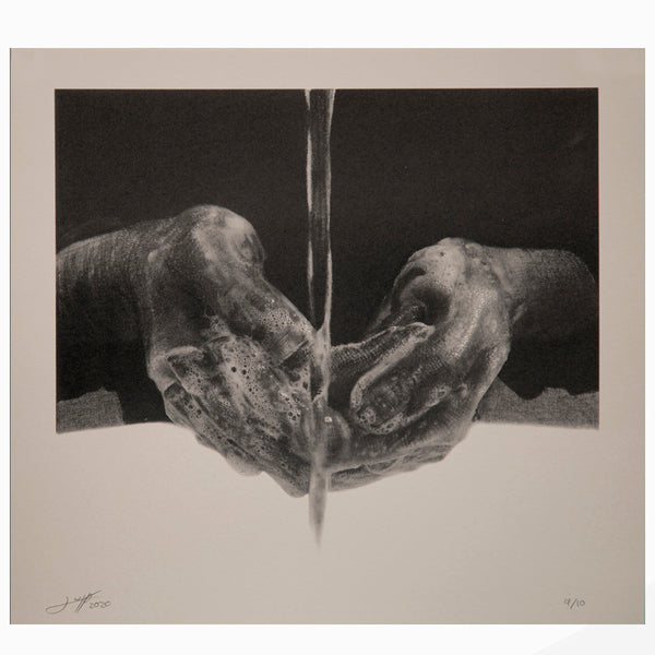 Ablución. Es un proyecto basadas en dibujos realizados en grafito y carboncillo, que describen el proceso de desinfección y purificación, la ablución quiere decir “lavatorio ritual del cuerpo o de una parte de él”, con el fin de purificarlo, para desintegrar las maldades del cuerpo y el espíritu, por medio del agua.