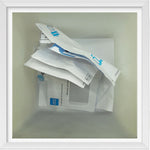 WHITE TRASH es una serie de 63 fotografías, que estarán expuestas en un mismo muro, de los contenedores de basura de cada habitación que limpié, dando cuenta de la cantidad de productos que son desperdiciados cada día. Mis fotografías usan la estética de la fotografía publicitaria, en donde la limpieza, pulcritud y fondos blancos son característicos. Pero en mi caso busco mantener esa pulcritud en los objetos que encontraba en las basuras. Los coleccionistas tendrán la oportunidad de ser curadores de su propia obra, ya que cada quién podrá escoger el políptico que quiera, jugando con la selección de las imágenes que quiera llevar. No tienen un orden particular en la exposición, esoto va más en el azar y el el gusto de cada quién.