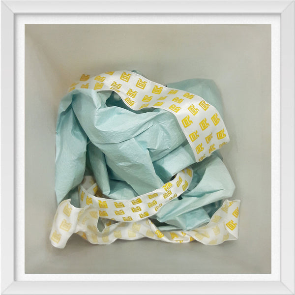 Título: Serie White Trash - Papel celeste con cinta amarilla