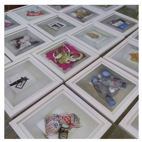 WHITE TRASH es una serie de 63 fotografías, que estarán expuestas en un mismo muro, de los contenedores de basura de cada habitación que limpié, dando cuenta de la cantidad de productos que son desperdiciados cada día. Mis fotografías usan la estética de la fotografía publicitaria, en donde la limpieza, pulcritud y fondos blancos son característicos. Pero en mi caso busco mantener esa pulcritud en los objetos que encontraba en las basuras. Los coleccionistas tendrán la oportunidad de ser curadores de su propia obra, ya que cada quién podrá escoger el políptico que quiera, jugando con la selección de las imágenes que quiera llevar. No tienen un orden particular en la exposición, esoto va más en el azar y el el gusto de cada quién.