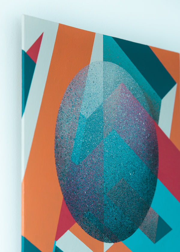 Dimensiones: 48 x 37 x 3 cm. Sin marco / montura flotante sobre madera.