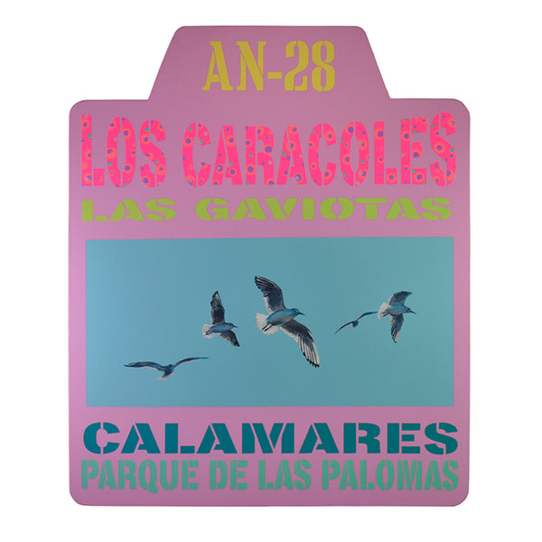 Trayectos. Es un proyecto pictórico de apropiación de las antiguas tablas de ruta de los buses tradicionales de Bogotá y Colombia, en el que creamos un imaginario de recorridos a partir de la asociación y clasificación de los nombres de los barrios como conceptos, términos e imágenes populares de las calles del país.