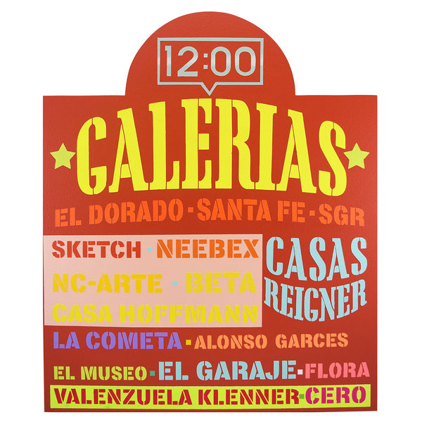 Trayectos. Es un proyecto pictórico de apropiación de las antiguas tablas de ruta de los buses tradicionales de Bogotá y Colombia, en el que creamos un imaginario de recorridos a partir de la asociación y clasificación de los nombres de los barrios como conceptos, términos e imágenes populares de las calles del país.