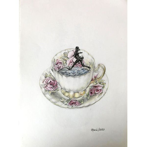 Esta serie surgió en el contexto de la pandemia, inspirada por la libertad de nuestra mente, que no tiene límites, aún en medio del aislamiento y el encierro. Para mí el café siempre ha sido algo que me reconforta. Es también un evento social, un momento afectuoso para vernos y conversar, y esas conexiones humanas fue algo de lo que el aislamiento social también nos privó. Sin embargo, a una situación tan compleja y oscura quise darle una nota positiva y transformarla en un mundo de posibilidades, aún en soledad y dentro de un espacio delimitado. La taza de café, además de ser un elemento que en mi día a día me da tranquilidad y que me hace vivir más despierta –un lugar intangible de seguridad y de bienestar– en mis dibujos se convirtió en una metáfora del lugar que habitamos, una metáfora de nuestra casa.