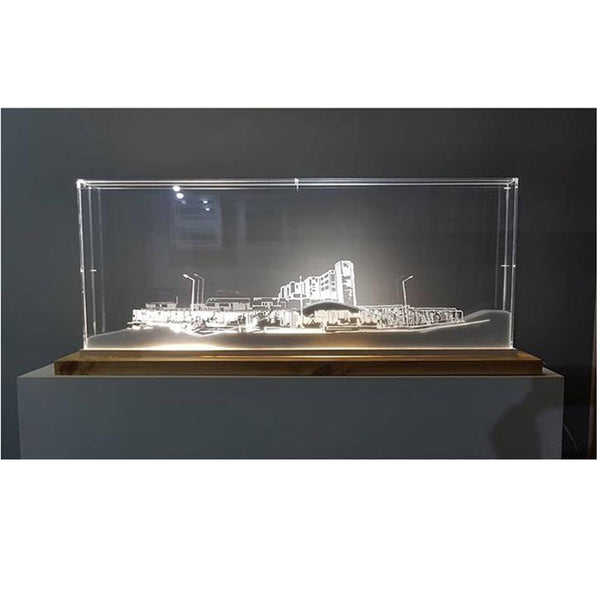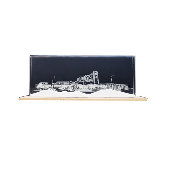 corrupción que se dio en las alcaldías o mandatos de turno. Construcciones hechas con el salario del pueblo, de la ciudad, gracias al recaudo del estado, que terminan ocupando un lugar en el espacio público y sin función o servicio. Convirtiéndose en parte del mobiliario urbano dentro de la cotidianidad y deterioro que trae el tiempo. Construcciones, edificios y demás en donde el deterioro y desmorone de nuestro salario es evidente. Por esta razón este proyecto está elaborado en sal sobre vidrio acrílico.