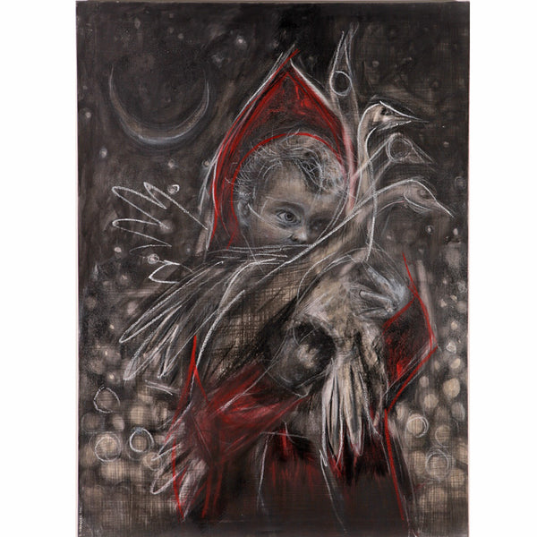Técnica: Carboncillo acuarelable , barnices y óleo en barra