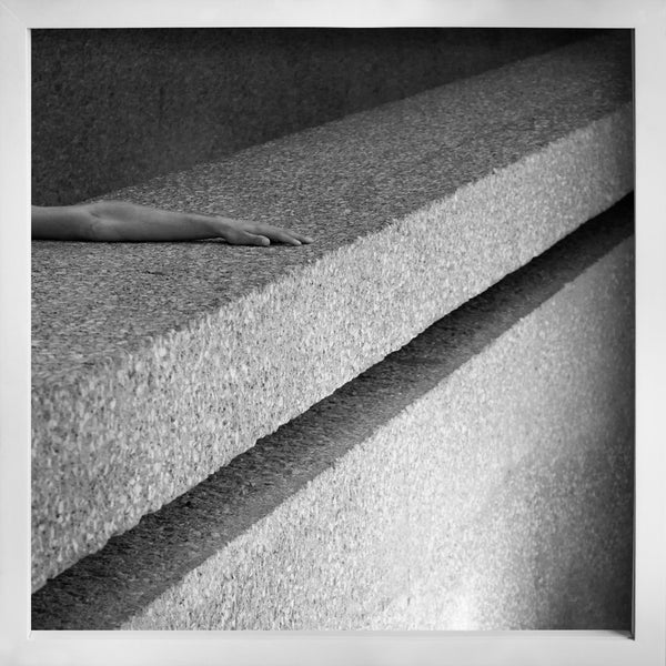 “En este proyecto fotográfico exploró la arquitectura como un espacio abstracto encontrándose con un cuerpo. Busco generar un diálogo entre estas dos materias. Un espacio construido para un cuerpo pero recto y abstraído. Encuadrando los ángulos rectos de la arquitectura creó una imagen abstracta que, en su dureza, recibe la mano humana que nos permite ver su espacialidad. Es un encuentro entre la complejidad de un cuerpo como la simpleza de la imagen abstracta”.