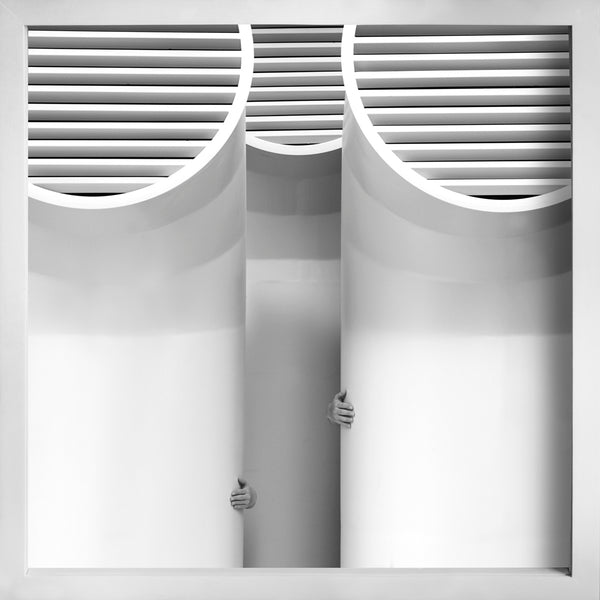 “En este proyecto fotográfico exploró la arquitectura como un espacio abstracto encontrándose con un cuerpo. Busco generar un diálogo entre estas dos materias. Un espacio construido para un cuerpo pero recto y abstraído. Encuadrando los ángulos rectos de la arquitectura creó una imagen abstracta que, en su dureza, recibe la mano humana que nos permite ver su espacialidad. Es un encuentro entre la complejidad de un cuerpo como la simpleza de la imagen abstracta”.